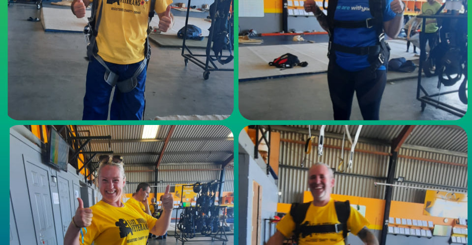 The East Durham Veterans Trust team had an early start at the parachute site, arriving before anyone else to ensure they could get a headstart in setting up stalls and preparing the arrival point for the 40 people who had given up their time to skydive in aid of the trust. Each of the skydivers were asked to raise a minimum of £400 to take part in the day.